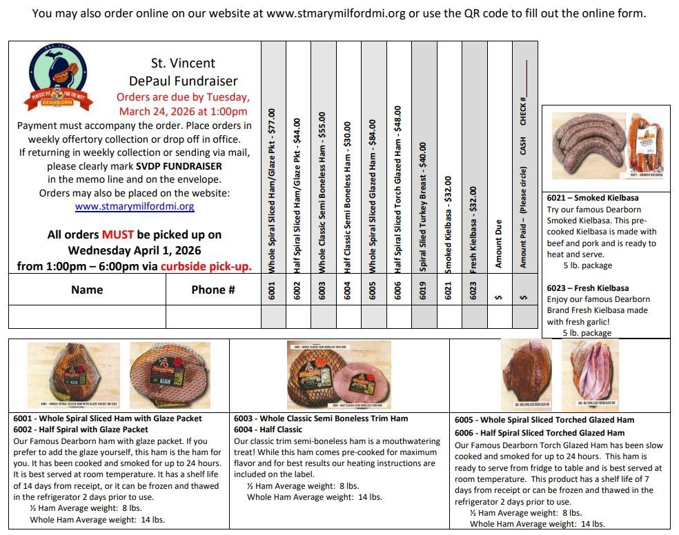 Easter SVdP Ham and Kielbasa Order