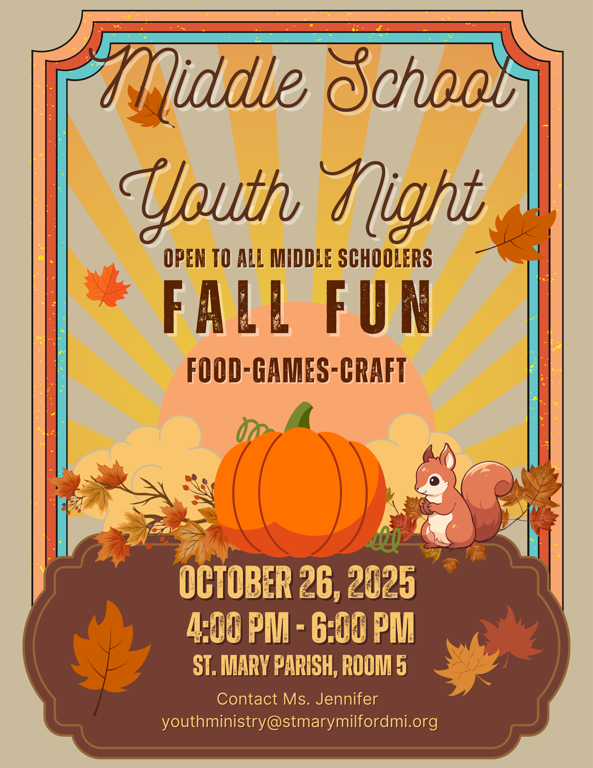 - Students are encouraged to attend the monthly Middle School Youth Night on Sunday